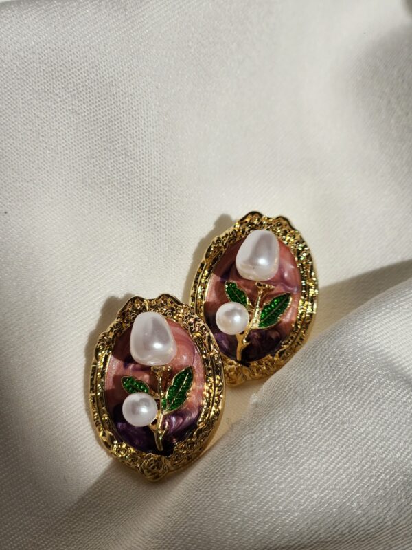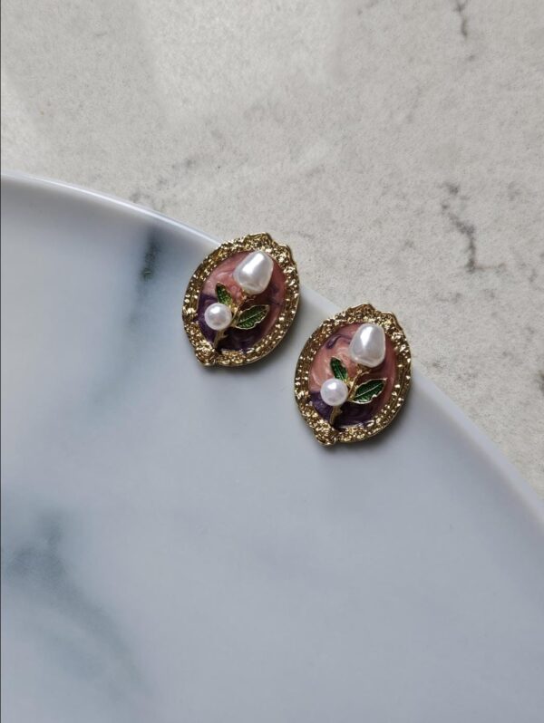 Kadın Vip Germent Serisi Pirinç Üzeri Metal Kaplama İnci Detay Vintage Küpe